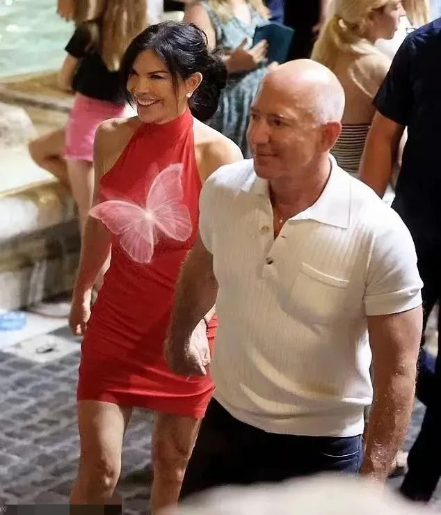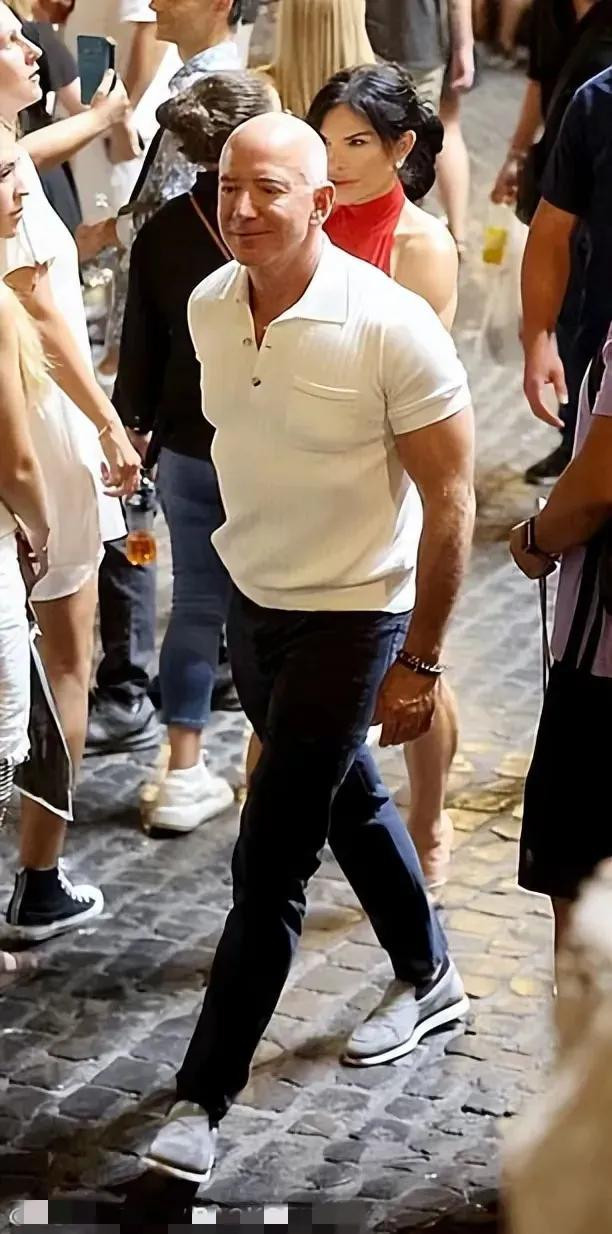 在人堆里,贝佐斯像极了一个绅士,伸手牵着自己最爱的女人,走在喧闹的人群中,身材五短的桑切斯,带着娇羞的表情跟着老男人后头,充满了幸福的感觉。