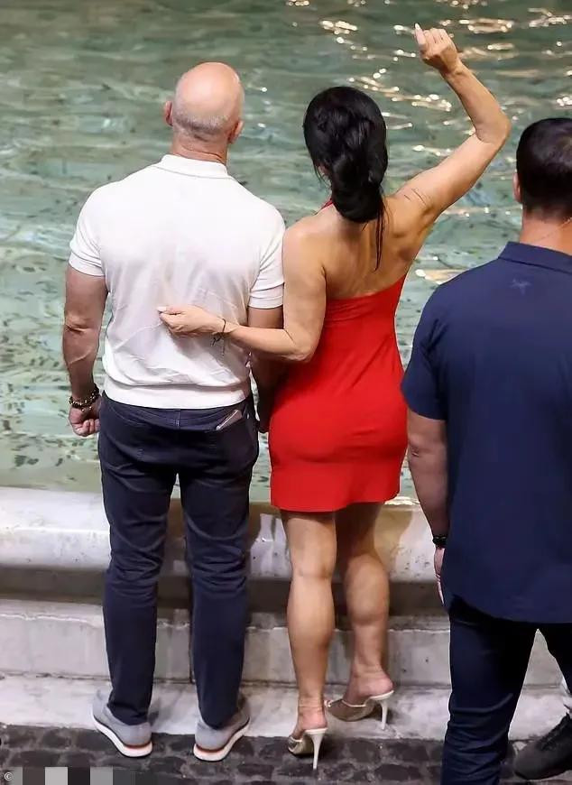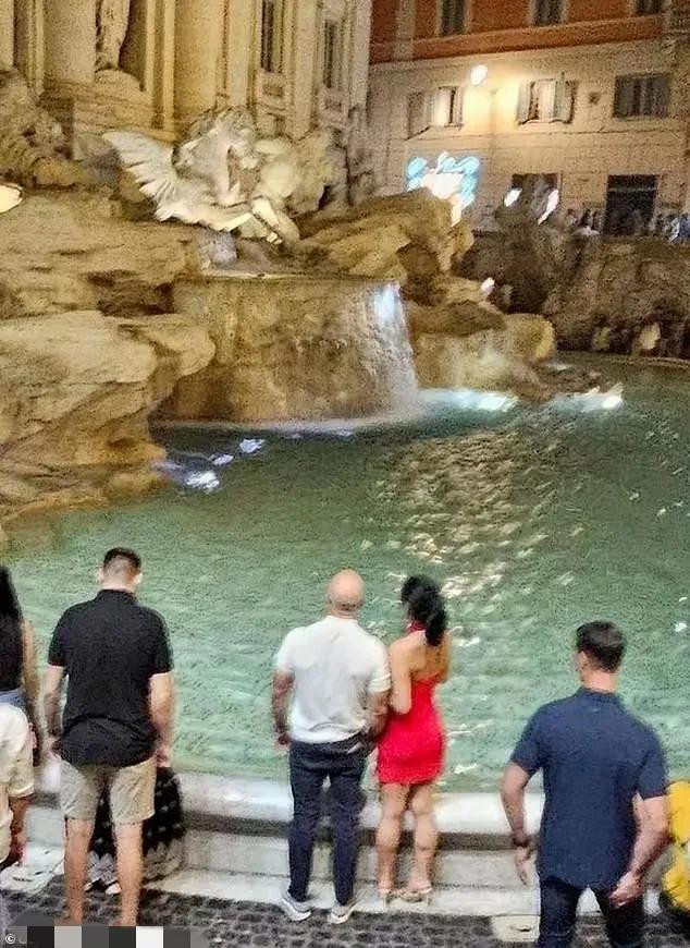去年的八月,两人在意大利度假,这是罗马著名的景点特雷维喷泉。