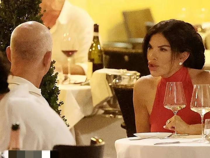 两人在喷泉边打完卡,然后去酒店就餐,贝佐斯喝着葡萄酒,桑切斯用叉子吃着大餐,享受愉悦的 二人世界。