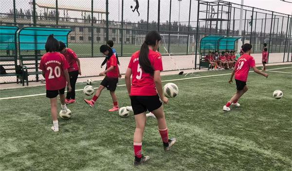 女子足球队训练热身训练。人民网黄津晓虎摄