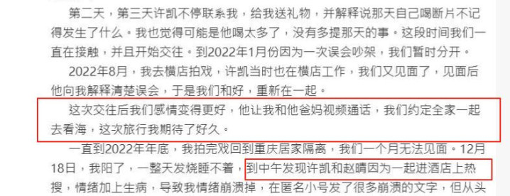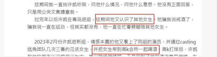 事后才明白,原来当时许凯不仅对外宣称自己单身,还与多名女性关系密切,连追求方式都与当初追她时相似。