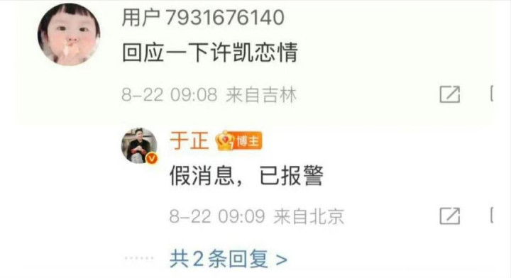 于正作为许凯的老板还是很有发言权的,他针对热搜的直接回应,也给粉丝们一丝心理安慰。