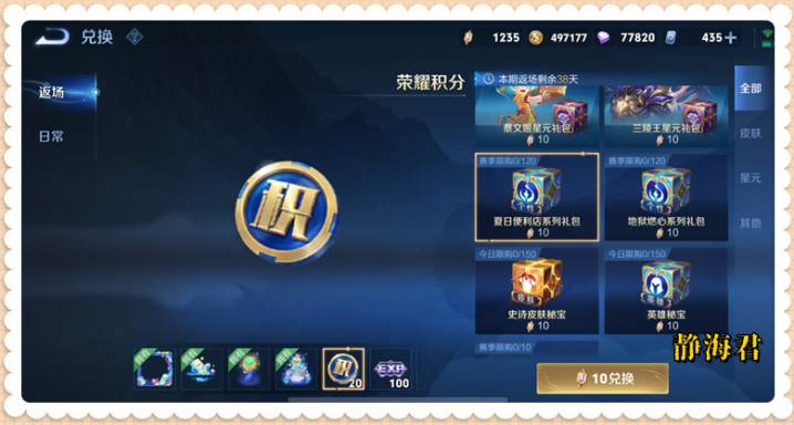 最后,如果真的一分钱不花,我们有哪些渠道可以白嫖荣耀水晶(获得荣耀积分或者积分夺宝券呢?)。