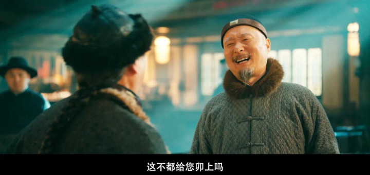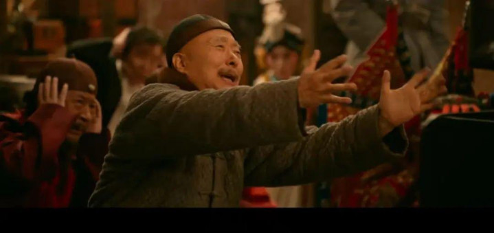 而改编到电影版里,金啸天成了那个不畏强权、坚守初心的关键人物,明明知道大帅勒令改戏,也清楚不改戏是死路一条,依旧挺直腰板照唱不误。这一情节改动也招致了不少诟病——一个知道今晚有演出却依旧抽大烟抽得不省人事的角色,怎么突然之间就成了守住戏班最后的底线、拒绝被权力裹挟的高光角色?