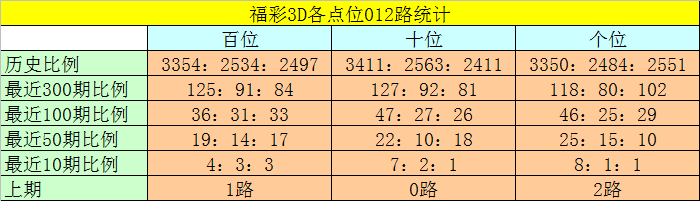 个位分析:该位最近10期开出了8个0路号码、1个1路号码、1个2路号码,0路号码热出。本期排除2路号码,参考号码:3。