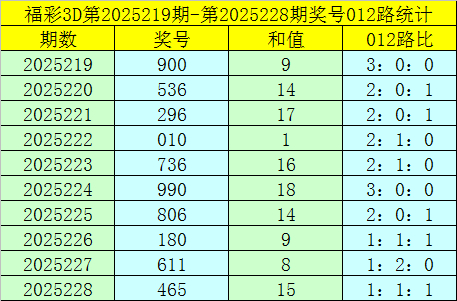 福彩3D第2025229期012路分析