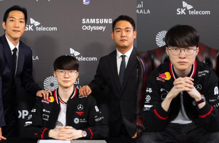 8月29日下午,Faker突然更新了个人主页,一口气在动态中发布了好几张照片。照片内容是他完成与T1俱乐部的正式签约,他还拿着“Faker 2029”字样的全新队服,T1俱乐部的很多高层都站在他的身边进行合照,背后则是T1俱乐部各种赞助商的LOGO。这显然是官方公告性质的形态,T1效仿传统体育俱乐部那样搞了个续约仪式。这条动态没有任何的配文,只有“T1”和“Faker”的TAG。
