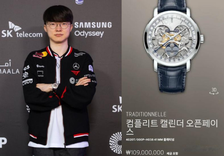 至于Faker这次佩戴的这款手表款式,很快就被网友们扒出来。这是江诗丹顿传袭系列的全日历手表男款4020T,全球限量370枚的新品。韩国售价是1.09亿韩元,国内的电商旗舰店是59.5万元。以Faker千万年薪的身价,这种名贵手表肯定是买得起的,但我不相信他会买,他连粉丝送的衣服和鞋子都穿了几年。Faker并非那种显摆秀富的选手,他很少佩戴饰品,背包也只是挂着粉丝们送他的一些普通玩偶饰品。