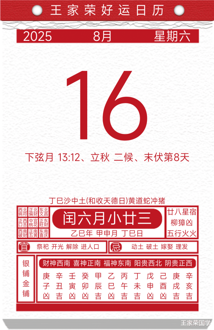 农历日期:二零二五 乙巳蛇年 闰六月小廿三