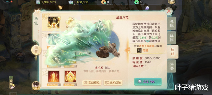 (3)人宠协同的输出能力。神裔的伤害技能是跟宠物有关系的,男神的【撼山】技能输出取决于自己宠物的最大法力值、女神的【啸月】技能输出是取决于自己宠物的最大生命值,这就很有意思了。