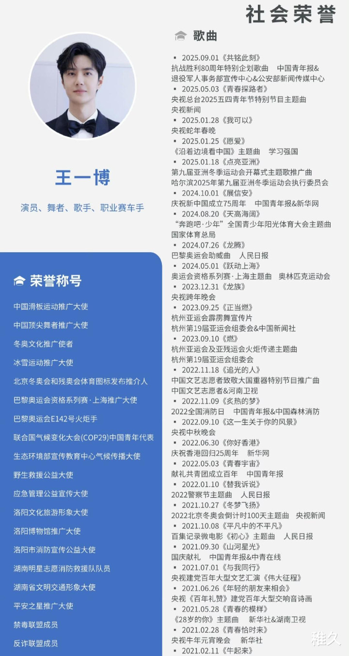 《共铭此刻》的MV结尾,王一博转身走向朝阳,画面叠映出80年前抗战青年的黑白照片。那一刻,流量明星、演员、赛车手、青年代表……所有标签都褪去了,只剩下一个26岁的中国青年,在用他的方式完成一场跨越时空的致敬。正如网友所说:“王一博的正能量不是口号,是把每一件小事做到极致的执拗。”