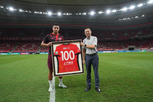 赛前,海港俱乐部为蒋光太颁发了100场纪念球衣。