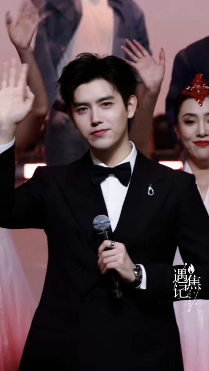 白色衬衫配黑色的领结,再搭一套黑色的西装,近一米九的高大个头,长身玉立,站在台上板板正正的。
