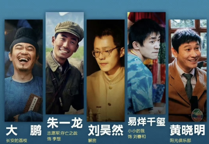 入围最佳男主的大鹏、朱一龙、刘昊然、易烊千玺、黄晓明,个个待爆,其中年龄最小的易烊千玺已是第四次提名金鸡奖。