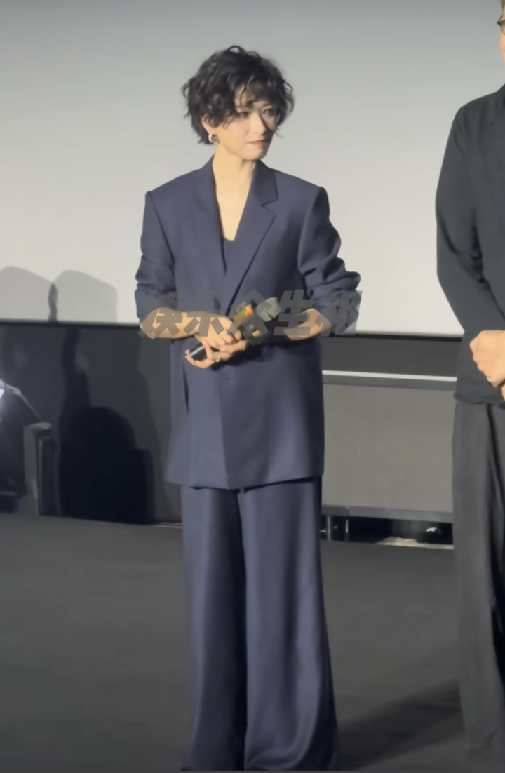 万茜出席金鸡国产电影展启动仪式,穿的是一套藏蓝色的西装,搭配一头短短的卷发。