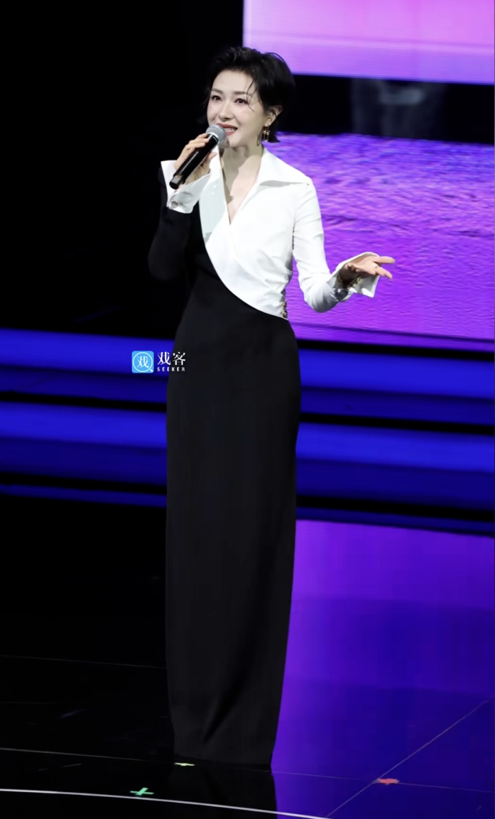开幕式上则是一袭黑白拼接长裙,再配短卷发松弛感拉满,台词功底也很好,字正腔圆的发言感染着现场的每一位嘉宾。