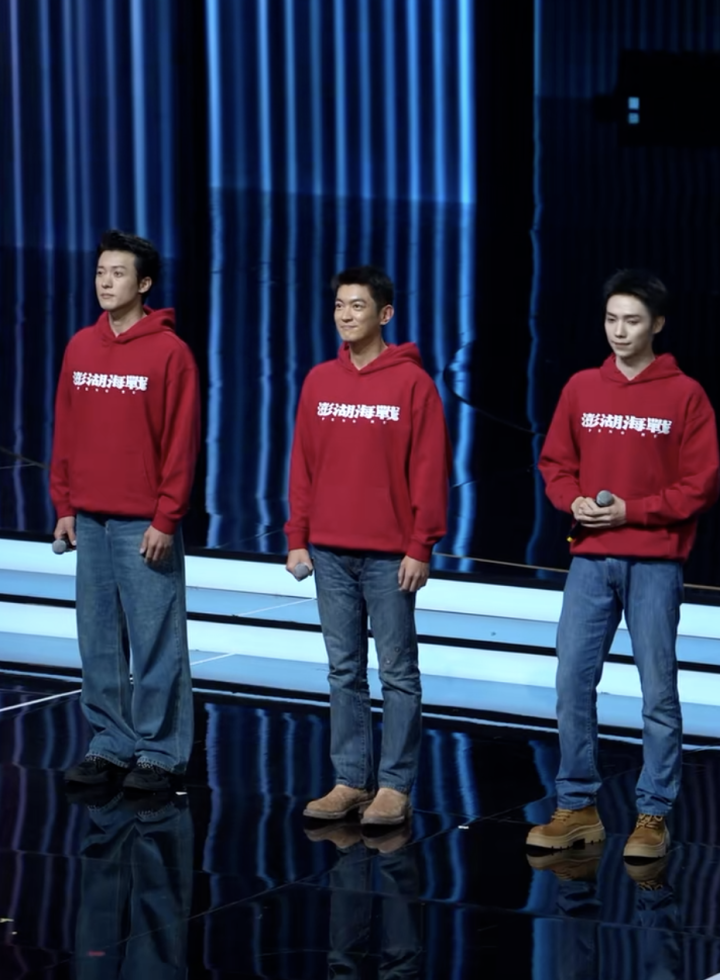 杜江、侯雯元、罗一舟代表《澎湖海战》出席,他们的造型都非常简约,穿着印有片名的红色卫衣配淡蓝色牛仔裤。